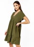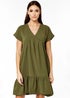 Gini London Khaki V-Neck Tiered Mini Smock Dress
