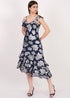 Gini London Navy Floral Clipped Tiered Ruffle Midi Dress