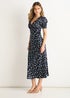 Gini London Navy Floral Lace Trim V Neck Midi Dress