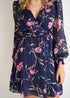 Gini London Navy Floral Print Shimmer Stripe Chiffon Wrap Mini Dress