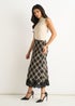 Elevate your everyday style with this striking Mono Check Skirt, where bold geometric patterns meet delicate contrast lace detailing. The bias cut creates a flattering, fluid silhouette that moves with you, while the lace accents add an unexpected touch of sophistication. Perfect for mixing prints or layering over basics, this piece bridges casual and dressy with effortless confidence.