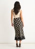 Gini London Navy Mono Check Contrast Lace Bias Skirt