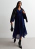 Gini London Navy Pleated Hanky Hem Wrap Midi Dress