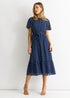 Gini London Navy Spot Chiffon Angel Sleeves Midi Dress