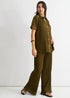 Gini London Olive Plisse Loungewear Wide Leg Trouser