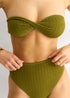 Indulge in luxury with our Olive Textured Twist Front Bikini Top. Crafted with a unique twist front design and textured fabric, this bikini top exudes elegance and exclusivity. Experience the ultimate blend of style and comfort, perfect for lounging by the pool or soaking up the sun on the beach. Elevate your swimwear collection with this must-have piece.