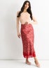 Gini London Red Floral Lace Trim Bias Midi Skirt