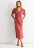 Gini London Red Floral Lace Trim V Neck Midi Dress