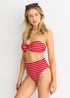 Gini London Red Textured Twist Front Stripe Bikini Top