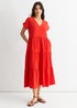 Gini London Red V Neck Pocket Smock Midi Dress