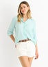 Gini London Sage Green Cotton Gingham Roll Up Sleeves Oversized Tie Top