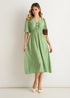 Gini London Sage Green Spot Print Shirred Waist Shift Midi Dress