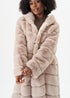 Gini London Stone Panelled Hooded Longline Fur Coat