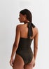Gini London Twisted Halter Swimsuit In Black And Gold Lurex