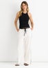 Gini London White Linen Look Contrast Stripe Drawstring Trouser