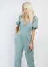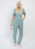 Learn morePuff sleeves, ruched front, strappy cut-out neck - could the details on this Girls on Film by Dani Dyer jumpsuit be any dreamier? In on-trend sage, it features chic tapered legs and pockets, because every outfit is better with pockets.