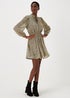 Feel gorgeous in gold with this stunning dress! Styled with snug long elasticated sleeves for extra warmth, it features a stunning frill skirt and neckline for a feminine touch. Crafted from a super soft material, it includes a trendy animal print and a tie neck for a flattering finish.