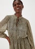 Learn moreFeel gorgeous in gold with this stunning dress! Styled with snug long elasticated sleeves for extra warmth, it features a stunning frill skirt and neckline for a feminine touch. Crafted from a super soft material, it includes a trendy animal print and a tie neck for a flattering finish.