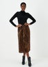 A must for fashion-forward individuals, you'll love taking a walk on the wild side in this statement skirt. Cut to a versatile midi length that provides both elegance and comfort, it's completed with stretch at the waistband, a chic animal print and a gold colourway for a fabulous touch of luxury. Rock with your favourite tops and boots. Length: 84cm.