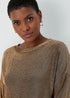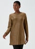 Bring out the party vibes with this fabulous top, cut with a billowing longline silhouette and featuring shimmering metallic detailing. In luxurious gold, the comfy top is finished with long sleeves to keep your arms covered from pesky chills. Wear with your favourite trousers and boots. Model Height: 5ft 8.