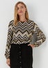 Learn moreLuxurious style is always guaranteed with this beautiful long-sleeved top. Sure to help stave off some seasonal chills, it comes with a gold zigzag design for a striking and eye-catching appearance. Perfect for parties and dressed-up events, we recommend wearing the look with trousers and ankle boots. Model Height: 5ft 9.