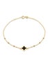 Made from 9-carat yellow gold, this bracelet features delicate clover-shaped charms inlaid with lustrous Onyx.