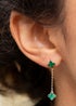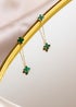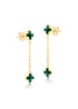 9ct Yellow Gold 6.75mm x 35mm Malachite Clover Petals Drop Stud Earrings