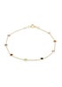 The combination of the warm yellow gold and the colorful CZ stones makes it a versatile piece that can be worn alone for a subtle statement or layered with other bracelets for a more eclectic look.