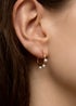 Each earring features a series of radiant round fresh water pearl set within a sleek 9ct yellow gold hoop.