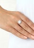 Its exquisite design, featuring a brilliant princess-cut CZ stone surrounded by a cluster of sparkling accents, makes it a standout piece in any jewellery collection.