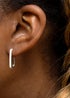 Crafted from sterling silver, these earrings feature a sleek J-shape adorned with white enamel, adding a touch of sophistication to any look.