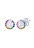 Sterling Silver Rhodium Plated Multi-Coloured CZ 8mm Disc Stud Earrings