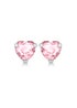 Crafted from sterling silver, these stud earrings feature a heart-shaped setting adorned with a sparkling pink cubic zirconia stone.