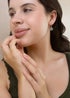 Complementing the clover hoops are 1.1mm cubic zirconia (CZ) that add a subtle sparkle.