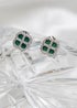 Golden Moments Sterling Silver Rhodium Plated Clover Malachite and White CZ Stud Earring