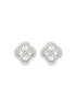 Elegant and luminous, these sterling silver stud earrings feature clover motifs inlaid with radiant mother of pearl. Each clover is framed by sparkling white cubic zirconias, creating a refined balance of shimmer and sophistication.