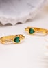 Golden Moments Yellow Gold Plated Heart Malachite CZ Huggy Earrings