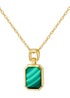 The necklace features an octagon-shaped malachite stone, known for its rich green hues and distinctive banding, set in sterling silver with a luxurious yellow gold plating.