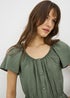 Bring effortless charm to your wardrobe with this green angel sleeve shirt. The soft angel sleeves add a touch of elegance, while the gathered tie waist creates a flattering, defined shape. Finished with a classic button-front design, this timeless top evokes easy-breezy boho style.