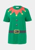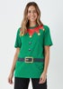 Getting into the festive spirit is easy with this delightful T-shirt. In green and printed with a belt, buttons and a playful bell collar to create the appearance of an elf suit, the soft tee is cut with short sleeves and is the ultimate partner for leggings. Part of a family range so parents and children can coordinate their looks this Christmas.