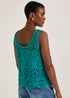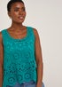 This beautiful 100% cotton top provides soft comfort and elegant style in equal measure. In a gorgeous green colourway, the crochet lace detailing is perfect for getting you ready for summer. Team it with shorts and sandals. Model Height: 5ft 8.