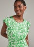 Add a super cute touch to your collection of dresses with this sweet number. Tailored to a midi length with a chic detailed front, which creates an uber feminine neckline, the sweet frill sleeves add elegance, while the practical length is perfect for any occasion. Light and airy, the material is finished with a gorgeous floral print all over. Dress up with strappy heels or sandals, or maybe down with your favourite trainers. Length: 120cm.