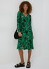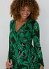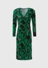 Green Floral Print Jersey Wrap Dress