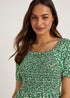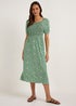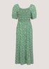 Green Floral Shirred Midi Dress