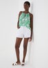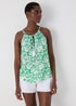 Learn moreElevate your summer wardrobe with our stunning Green Leaf Print Cami Top, the perfect blend of comfort and style. This lightweight and airy cami top features an enchanting green leaf pattern that exaggerates summer, making it a versatile piece for all your summer occasions. This cami features a high-neck design, with a keyhole adjustable tie fastening to add that extra detailing and flattering fit. Pair it with high-waisted denim shorts and strappy sandals for a casual yet chic summer look or for a more formal occasion, tuck it into a midi skirt and add a statement necklace and heels.