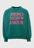 Wrap yourself in style and comfort with our Green Merci Sweatshirt , an embodiment of effortless chic. Crafted from the finest cotton, this sweatshirt boasts a premium and soft feel against your skin, keeping you cosy on even the chilliest days. Its vibrant green hue exudes a refreshing energy, adding a pop of colour to your wardrobe. Featuring a eye catching and feminine Merci Mon Amour print in a gorgeous pink hue. The classic crewneck design and regular fit create a timeless silhouette that flatters every figure, making it a versatile addition to your casual and athleisure looks. Create a laid-back ensemble by pairing it with your favourite jeans and sneakers.