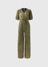 Add a touch of luxe to your evening wear collection with our metallic plissé jumpsuit in forest green. This figure-flattering piece is crafted from lightweight, fluid fabric that shimmers and catches the light beautifully. The wide-leg trousers and blouson sleeves create a relaxed, yet elegant, silhouette, while the deep V-neckline adds a touch of sophistication. Dress to impress with statement heels and a clutch for your next evening event.