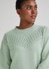 Spruce up your knitwear collection with this super cosy green jumper. Styled with a pointelle stitch design, it comes with a snug round neckline and is completed with balloon sleeves for added volume. This must-have item is perfect for teaming with jeans.