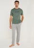 Learn moreKick back and relax in this cool set of pyjamas! Designed in a green tone, the top features a classic crewneck with a black trim, comfy short sleeves and the slogan 'CATCHING ZZZ'. Styled with versatile grey bottoms, they include an elasticated waist for added comfort and a drawstring for a personalised fit.