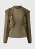 Add a touch of romance to your wardrobe with this Green Ruffle Blouse, a soft and stylish piece that brings effortless charm to any outfit. Featuring delicate ruffle detailing along the neckline and sleeves, this blouse is crafted from a lightweight fabric that drapes beautifully. The green hue adds a fresh, feminine feel, perfect for dressing up or down.